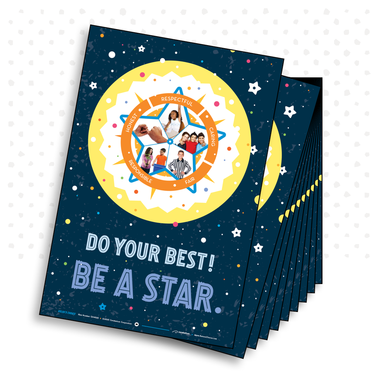 A colorful visual featuring the brand new K.C.’s Wheel which is comprised of four verbal problem-solving solutions and four nonverbal problem-solving solutions to use during “minor” problems. The poster directs students to tell an adult they trust if they ever encounter a “SERIOUS” problem. Created to accompany the Kelso’s Choice Conflict Management Kit.