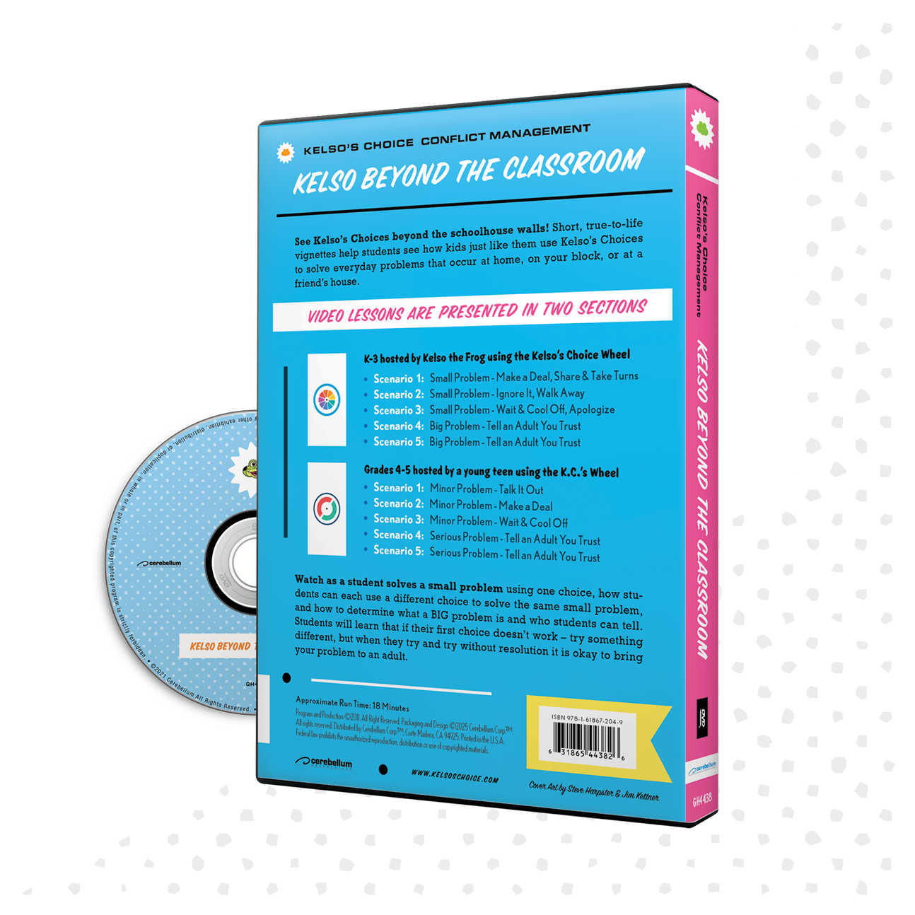 To learn more about the core Kelso’s Choice Conflict Management Kit, including a list of components and a Table of Contents, click here. Buy bundled and save! Our Complete 3-in-1 Conflict Management Kit includes the Kelso’s Choice Conflict Management Kit, the Kelso Booster Curriculum Kit and the Kelso Counselor Activity Kit (which contains this DVD). To learn more about what’s included in that comprehensive kit, as well as to see Table of Contents and more, click here.