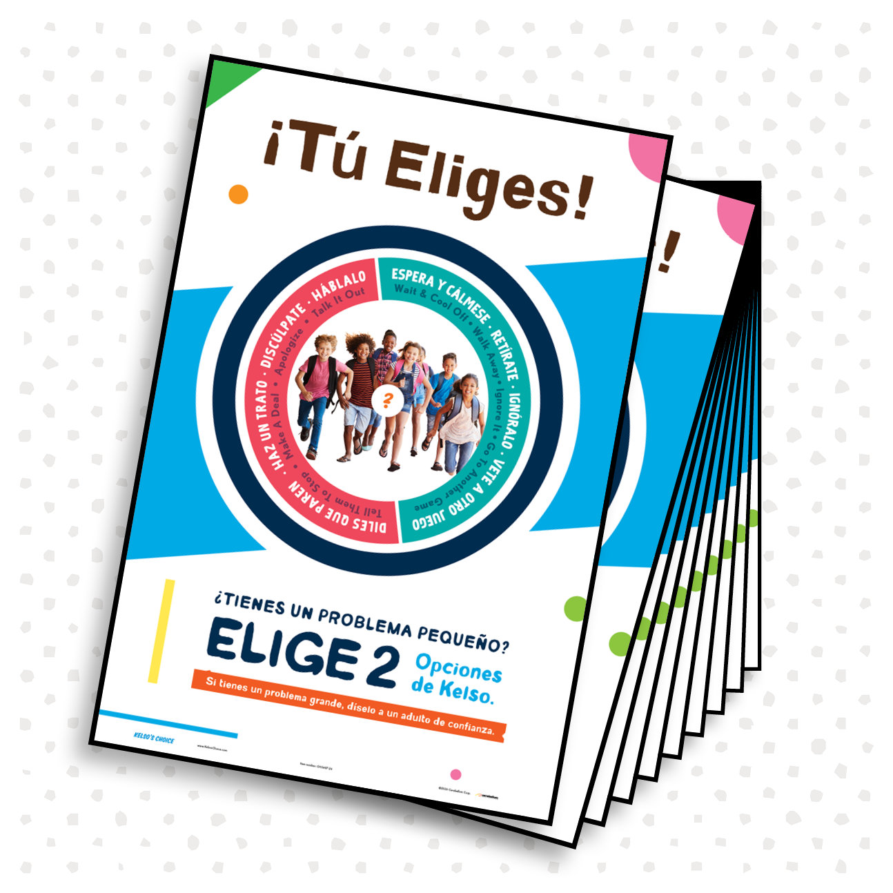 A full-color story book kids love in Spanish. This story book is part of the Kelso’s Choice Conflict Management curriculum based on the premise that every child is capable of becoming a peacemaker. Designed around Kelso the Frog, this program offers nine options students can choose from to resolve conflicts. This beautifully illustrated storybook brings Kelso and his friends to life.