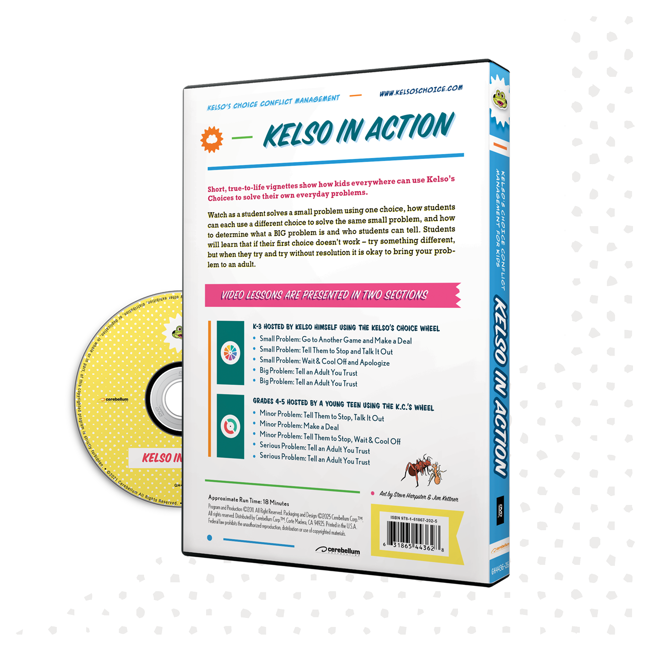 This DVD is part of the comprehensive Kelso’s Choice Conflict Management Curriculum Kit, a beloved classic empowering kids to make great choices for over 25 years. To learn more about the full Kelso’s Choice Conflict Management Kit, including a list of components and a Table of Contents, click here.