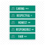 Front panel is the Kelso’s star (3 inches by 3 inches), and each successive panel illustrates one of the five Character Building traits. All trait names are visible so you can easily flip to the one you need. Laminated to last, get one or outfit your whole school with them.